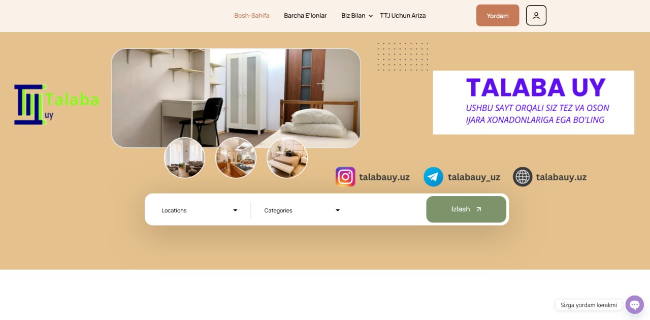 Yurtimizda ilk bora, ijarada istiqomat qiluvchi talabalarga qulaylik yaratish maqsadida yaratilgan talabauy.uz loyihasi oʻz faoliyatini boshladi. Ushbu saytda nafaqat talabalar oʻzlari uchun mos boʻlgan ijara uylarini topa olishi, balki yurtimizning qaysi manzilida boʻlmasin har bir kishi oʻz xohishiga koʻra mavjud hovli va koʻp qavatli uylarini osonlik bilan joylashtirishlari mumkin.